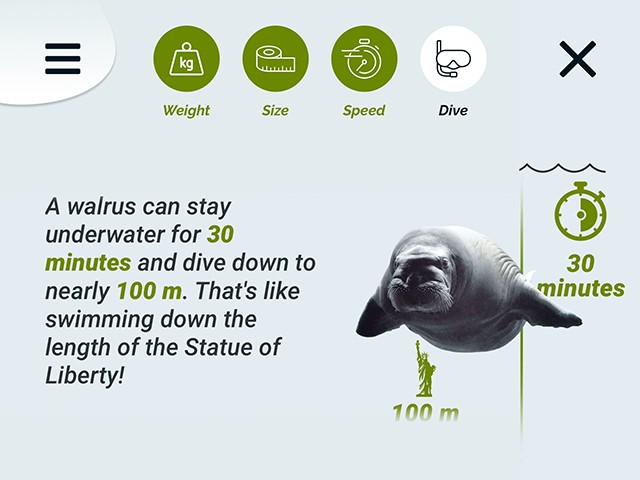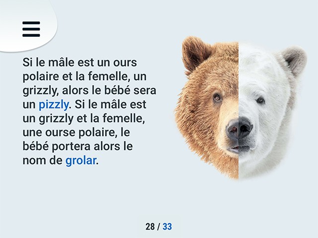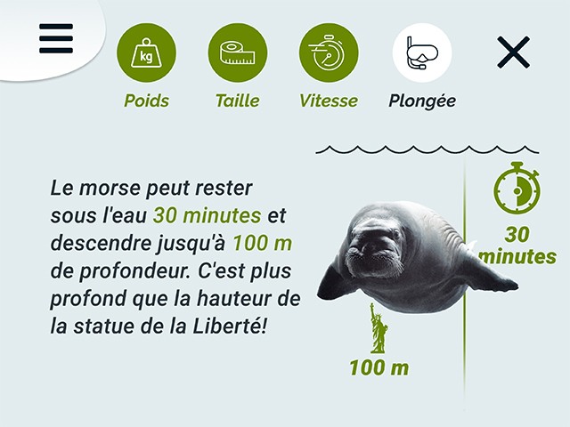Les jeunes peuvent notamment taper sur les bulles du béluga pour connaître ses méthodes de communication, creuser la tanière de l’ours, entendre le cri du narval et visionner des vidéos exclusives. Les utilisateurs peuvent tester leurs connaissances et collectionner les animaux sur leur banquise.