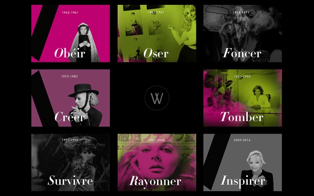 Nous avons donc développé des codes visuels et des mécanismes interactifs s'appliquant à chaque niveau de contenu, permettant au lecteur de rapidement s'orienter et facilitant la compréhension de l'histoire racontée. De plus, il était primordial que la signature graphique soit en accord avec l'univers léché et raffiné des cosmétiques.
