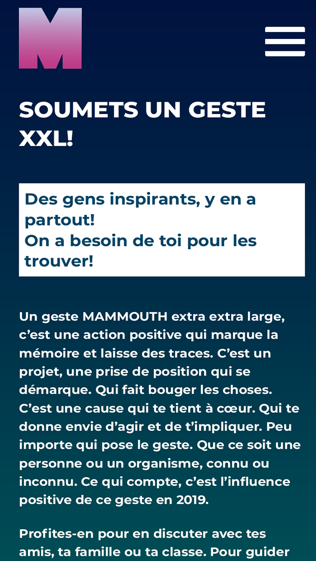 MAMMOUTH, c'est une initiative multiplateforme conçue pour les 13 à 17 ans, où des actions, des prises de position et des projets inspirants sont à l'honneur.