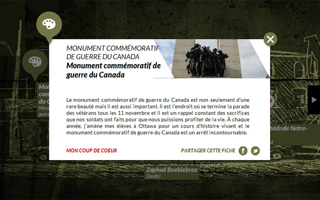 Les internautes étaient invités à se rendre sur le web pour y vivre une visite nocturne grâce aux capsules web Une nuit à Ottawa. Ils pouvaient également découvrir des lieux significatifs, ou encore participer au concours de géocaching La Quête et explorer la région en se munissant d'un GPS.