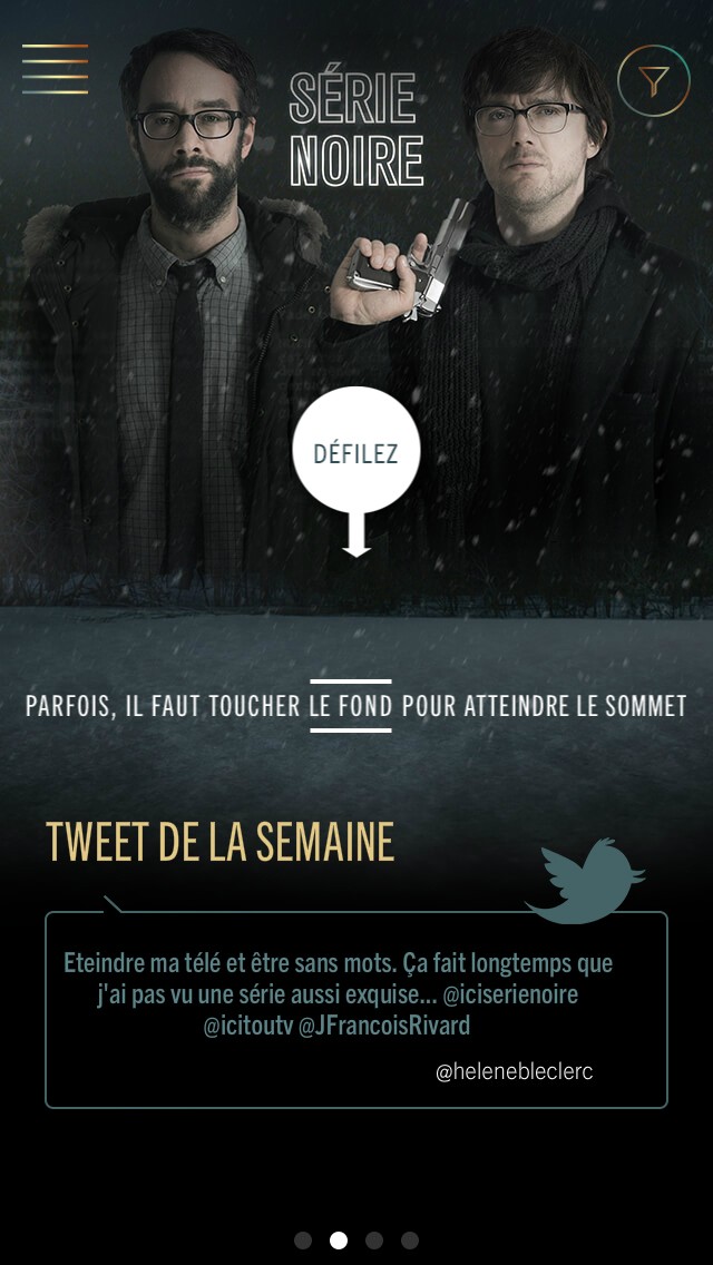 Le site web accompagnant la première saison de Série noire a connu un succès fracassant auprès du public ! Pour la 2e saison, le site et l'application mobiles demeuraient des compléments indispensables pour les fans de la série et continuaient de proposer une approche plaçant le contenu de la série au centre de notre stratégie.