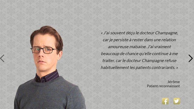 Alors qu'à la télé Florence Champagne, psychothérapeute sans aucune formation en la matière, offre des nouvelles modalités de traitement en ligne, le volet web de l'émission permet d'interagir avec son site professionnel et d'en parcourir les moindres détails.