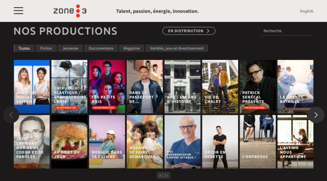 Pour les 20 ans de Zone3, l’entreprise souhaitait rajeunir son site web afin de mettre davantage en valeur la créativité, le talent et l'expertise de ses équipes. Le site a donc été complètement repensé afin que le catalogue immense des productions de Zone3 soit plus facile à naviguer et pour offrir une meilleure expérience aux utilisateurs. Le design a aussi été complètement revu afin de mettre les contenus en évidence.